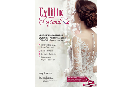Düğünlerde 2019 moda trendlerini izleyebileceğiniz, dekorasyondaki farklılıklar, lezzetli gurme menüler, gelin ve damadın konforu için planlanan çözümler, dev gelinlik ve damatlık defilesi ile finalde yaşanacak sürprizlere hazır mısınız?, Saç şovları ve müzik performansları ile 2019 Düğün trendlerini yakından görme fırsatı bulacağınız Lionel Hotel Evlilik Festivali 16 Şubat’ta genç çiftlere bu yılın konseptlerini tanıtacak.