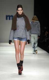 Defilede, yine kendi çizimlerinden olan şirin baskılar. Patch workler ve çoraplardaki espriler dikkat çekiciydi.
