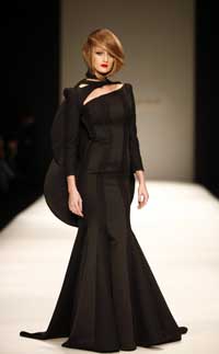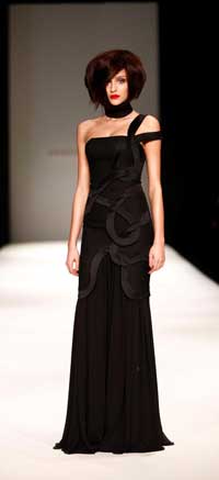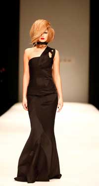 Kumaşları özel kırışık drape tekniği ile hazırlamış. İleri teknikler yardımıyla da drapelere farklı formlar verilmiş.