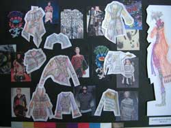 Koyu ipliklerle muline birlikte kullanılmış. Bulanık baskılar, iri intersia, düzensiz baskı haute couture yapılar mevcut.