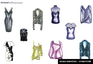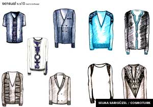 2. Sensual-Duyusal (karizma, resmi stil, karanlık-aydınlık): İnsanları etkilemek için resmi giyim kullanılıyor. Güçlü karakterler, kişisel karizma ve tutkulu bir mizaç. Merserize edilmiş ve kalenderden geçirilmiş yün, zengin bir pırıltı ve davetkâr dokunmaya dayanan hisler için moher ve ipek yün karışımları daha çok bu temada var. Latin esintili resmi giysiler ve stiller göze çarpıyor. Hem gerçek hem de yalnızca görsel efektler aracılığı ile yapılan dokumalar.