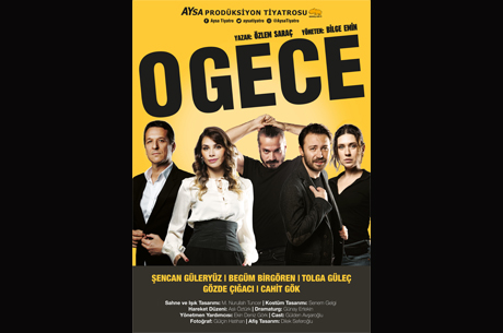 AYSA Prodüksiyon Tiyatrosu’nun yeni oyunu “O Gece”de, ünlü oyuncular Şencan Güleryüz, Begüm Birgören, Tolga Güleç, Gözde Çığacı ve Cahit Gök rol alıyor. Özlem Saraç’ın kaleme aldığı, Bilge Emin’in yönettiği “O Gece”, ilişkilere farklı bir bakış açısı sunuyor.
